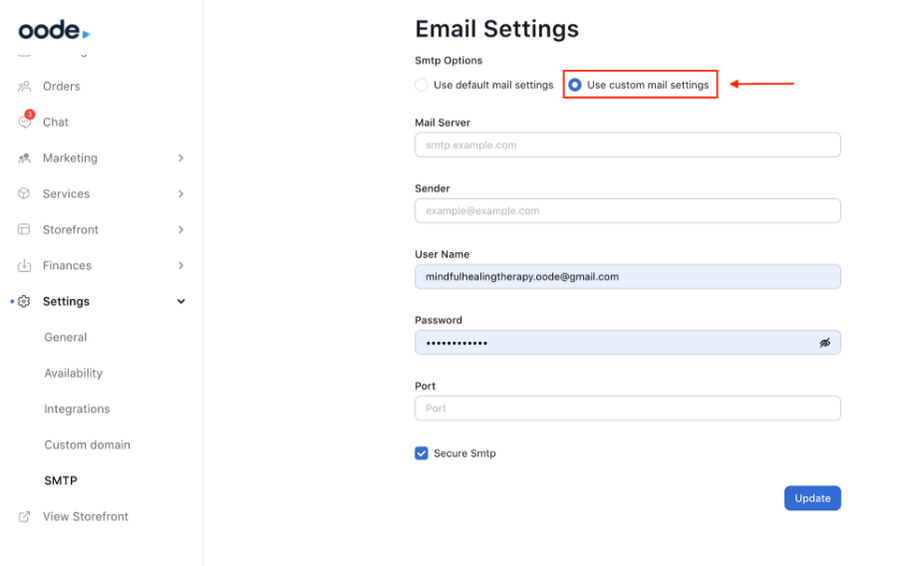 SMTP settings allow you to send emails to your clients from your own email address, giving you a more professional and branded appearance. If you're not sure how to set up SMTP parameters, you can contact your email service provider for assistance. Once you have your SMTP parameters, you can add them to your Oode account in just a few steps.