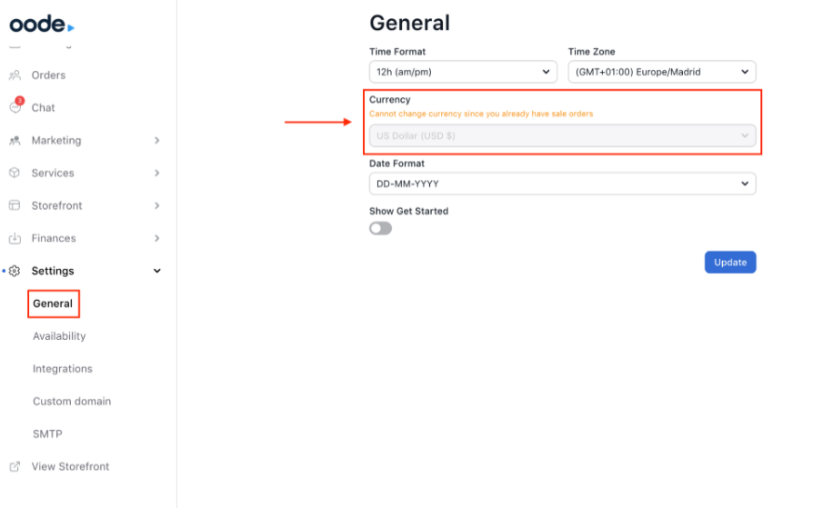 When you register for an Oode account, you'll be prompted to choose a default currency for your store. This currency will be used for all transactions and pricing in your store. However, if you need to change your currency after receiving sales orders, there are some important things to keep in mind.